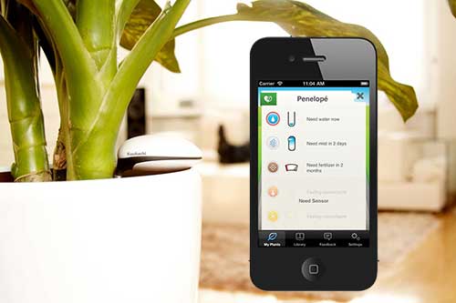 - 4. Koubachi. Este invento vén de Xapón, xa está á venda (sae en 100 euros, gastos de envío e IVE incluídos) e non espera de ti que saques a caixa de ferramentas. A idea é similar á de Flower Power: dislle a Koubachi que planta é a túa e irá enviando consellos para o seu coidado. A conexión vai por wifi, e terás sempre os datos dispoñibles nunha app para iPhone ou na web. Ademais, no caso de que de súpeto esteas a matar á túa planta (abriches as fiestras e están a ter moita corrente), Koubachi emitirá un son de alarma! Outro punto ao seu favor: non tes que mercar un dispositivo por planta. Koubachi aprenderá sobre as distintas especies que tes na casa e poderá darche consellos ata de plantas nas que non está posto.