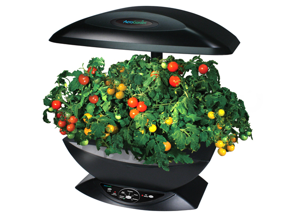 - 7. Aerogardens. A forma é similar á de LightPot, pero a idea é outra: non tes plantas na casa porque non queres ensuciar as mans e os mobles de terra? Agora xa non tes escusa: os aerogardens son testos nos que o aire substitúe á terra. Na parte de enriba hai tamén luz e tamén irá subindo conforme a planta medra. Os Aerogardens si están á venda, hai moitos modelos que van desde os 80 ata os 250 euros.