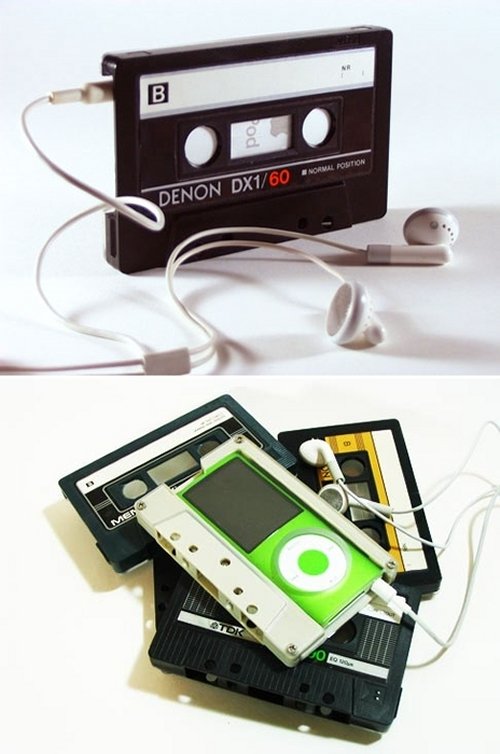 - Funda iPod de casete – Encántanos o xogo entre o retro e os dispositivos do “futuro”
