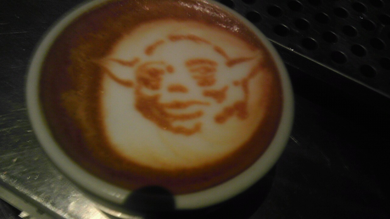 Ao igual que en todas as disciplinas artísticas, no arte latte hai niveis. Xa, ti non chamarías arte a calquera deses debuxos que veñen sobre o café, pero posiblemente todo cambiaría se o teu camareiro fose Mike Breach, un verdadeiro artista do latte. Todo empezou cando traballaba nun hotel, e pasaba horas en compañía da máquina de espresso facendo cafés. Con todos os ingredientes ao seu alcance, non tardou en empezar a pintar sobre o café. Ao principio só caras. Máis tarde, ante a emoción da xente e o hype creado ao seu redor, foi ampliando o seu repertorio de debuxos.