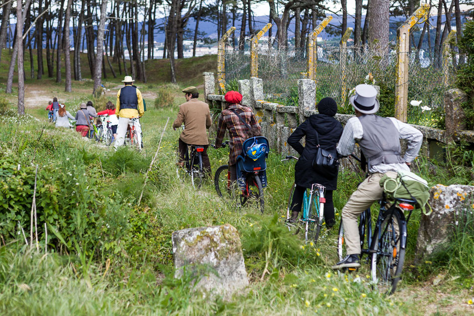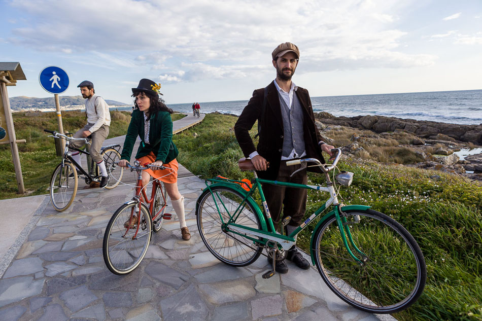 Abraiados quedaron os habitantes da Guarda que este domingo camiñaban xunto o mar. O vento costeiro viña cargado de nostalxia. Un grupo dunhas 50 persoas percorría o paseo marítimo con elegancia británica nas súas bicicletas clásicas. Gorras e sombreiros, tirantes, chalecos, e sobre todo moito tweed conformaban o estilo destes ciclistas, convocados por un grupo de amigos deste municipio para un evento singular: unha marcha ciclista con vestimenta de época e bicicletas de antano. A Tweed Ride chega a Galicia!