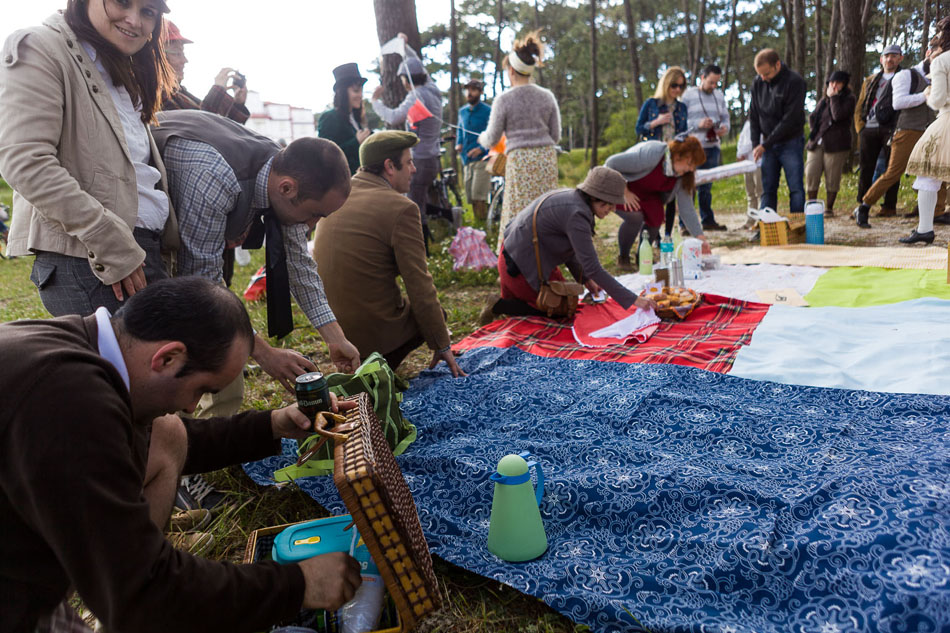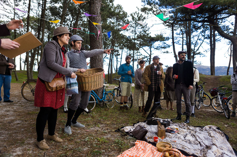 A Tweed Ride partiu do porto da Guarda, percorrendo a liña costeira ata Camposancos, onde os ciclistas pararon para repoñer forzas tamén con inspiración british. Así, despregáronse os manteis, abríronse as cestas de pícnic e serviuse o té, mentres unha gramófono portátil poñía a nota musical con discos de lousa (“Non é hip hop, é música da de antes”, aclaraba unha das nenas ciclistas). Tamén houbo tempo para sorteos e fotos analóxicas.