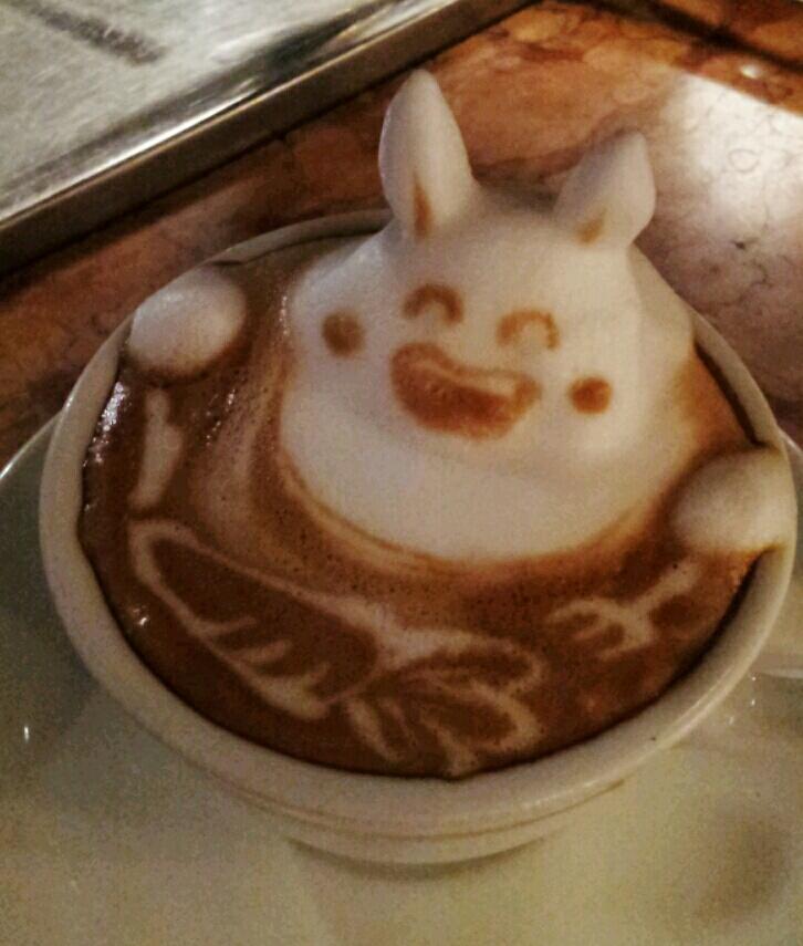 O arte latte é cada vez máis popular e case xa nin nos sorprende cando ao servirnos o café con leite aparecen corazóns, arbores ou cariñas amistosas. Claro que, como en todo, no arte no café tamén hai diferentes niveis. Está, por exemplo, Mike Breach, o responsable de Baristart, un Tumblr no que colga as súas creacións na máquina do café e que van moito máis alá dos debuxos clásicos desta arte. E está Kazuki Yamamoto, un artista xaponés do arte do café que foi un paso máis alá e empezou a facer creacións con volume nos cafés que lles servía aos seus clientes. Yamamoto traballa nunha cafetería de Osaka e fai esculturas coa espuma nos cafés que lles serve aos seus clientes. As súas creacións saen das cuncas (algunha vez incluso para saltar a outra!).