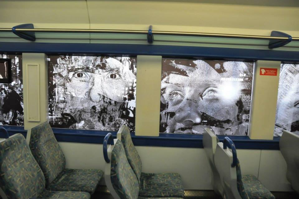 Cada unha das pezas está feita en vinilo, que foi pegado ás fiestras, ás portas ou ao mobiliario do vagón. Hai dende mensaxes no exterior ata rostros nas ventás ou (o meu favorito) textos de confesións ás veces deprimentes (como entre o sufrimento e a nada, prefiro o sufrimento ou son infeliz) que se mesturan cos viaxeiros que fan cada día eses traxectos. As estimacións de CP son que verán de media cada día estas obras unhas 260.000 persoas.