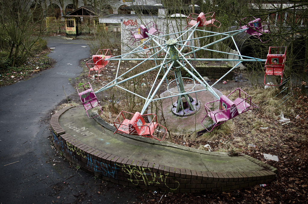 - Este parque de atraccións de Berlín pechou porque acabou sendo insolvente, pero a historia interesante é a do seu propietario. Norbert Witte, arruinado, fugouse en 2002 a Lima, coa súa familia e algunhas das atraccións do parque. En Perú intentou abrir outro, sen éxito. O seguinte que se soubo é que en 2004 foi condenado a sete anos de prisión por intentar meter case 200 quilos de coca en Alemaña, agachados dentro dunha atracción. Dise que vive nunha caravana no medio do seu parque de atraccións abandonado en Berlín.