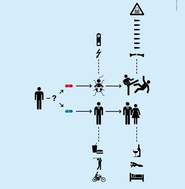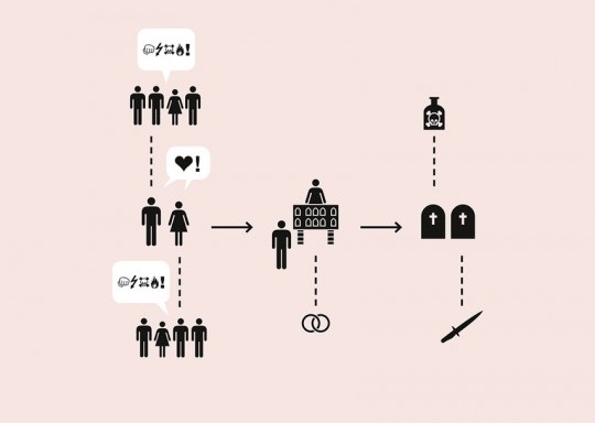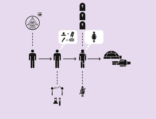 Matteo Civaschi e Gianmarco Milesi son dous publicistas italianos que publicaron xa hai anos un libro (‘Life in five seconds‘) con máis de 250 imaxes que, en pictogramas, explicaban eventos, personaxes, animais, lugares ou libros. O subtítulo do libro, irónico, aclaraba “sobre 200 historias para aqueles sen tempo que perder”. Nuns días sairá un novo libro dos mesmos autores, ‘Film in five seconds‘ no que 150 películas icónicas son descritas cuns poucos pictogramas, prescindindo de todo o que resulta accesorio na trama. O resultado é enxeñoso, provocador e divertido.