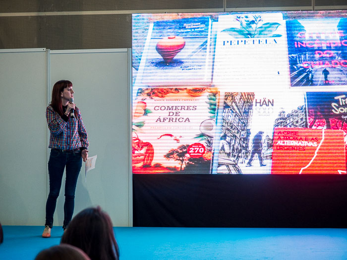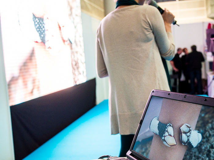 9. Paula Tubío amosounos os complementos que fai artesanalmente co seu selo, A Gata Moscovita. Durante os 6 minutos de exposición falounos dos seus primeiros deseños, de temática vintage, e das coleccións que os seguiron, de clara inspiración galega: a colección Pandeireta, e a colección Lío de Palangre, esta última composta por 18 pezas que evocan elementos ou costumes propios de vilas mariñeiras galegas.