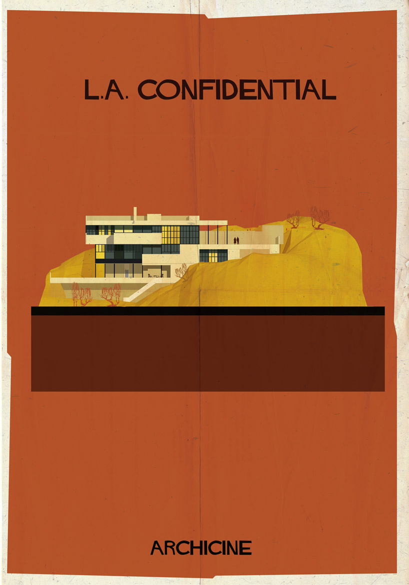 Nós non adoitamos pensar neles, pero Federico Babina si. Trátase do arquitecto e deseñador gráfico italiano (pero afincado en Barcelona) que está detrás de ‘Archicine’, unha serie de ilustracións que dan protagonismo aos edificios emblemáticos de diferentes filmes, facendo que reparemos neles tal e como merecen. Ao fin e ao cabo, son escenografías ideadas para contar unha historia.