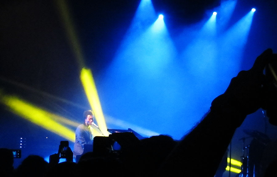 Puntual, Benjamin Clementine saíu ao escenario e comezou a maxia. El cun piano de cola, acompañado dun batería (enfrente e non detrás). Hai algo moi raro na música de Benjamin Clementine. É moi fácil pillarlle as influencias, está claro que escoitou a Nina Simone, a Antony & The Johnsons e quizais tamén algo de chanson francesa, porque soa a todo iso. Pero, á vez, notas que vai por libre, que o que estás a escoitar é raro e orixinal -hai cambios, estruturas, sorpresas. E a súa voz atrapa, a velocidade coa que toca o piano, moitas veces cunha soa man. Sorrí, agradece, e sabe como encandilar a todo un coliseo no que non cabe ninguén máis. Tonterías como cantar “Lisbon, Lisbon, Lisbon” en London. Mirar ao público e que de verdade pareza que está sorprendido do que está a acontecer.